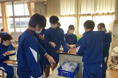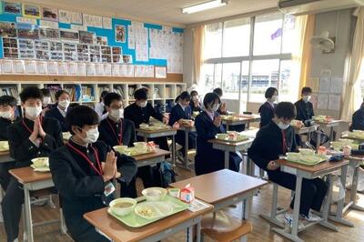 一中松明は3年生が製作して、3年生が中心となって松明運搬練習などを行ってきました。3年ぶりに参加する「松明あかし」に対する熱い想いがありますが、その分今日の給食を楽しみにしていたようです。