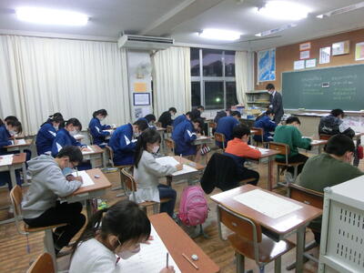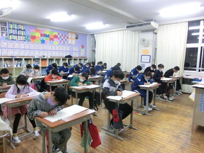 本日、17:00より第1回漢字能力検定を実施しました。中学生18名に混ざって第一小学校の児童10名も一緒に受験しました。小学生も中学生も、みんな合格を目指して問題に一生懸命取り組んでいました。