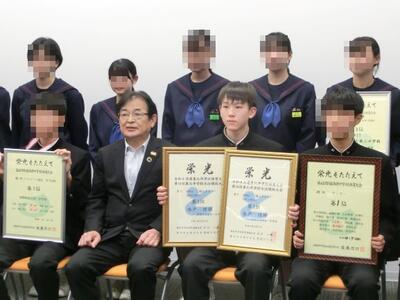 10/17(月)の16:20より市役所にて、「東北中学校体育大会と全日本合唱コンクール東北支部大会結果教育長報告」がありました。市内の中学生18名と各部活動の顧問の先生・部活動指導員が参加し、教育長さんへ結果を報告しました。本校からは水泳競技の200mと400 mの個人メドレーでどちらも第1位を獲得した2年生男子1名が参加し、今年度の反省を生かして来年度の目標を堂々と述べるとともに、とさらなる飛躍を力強く誓いました。