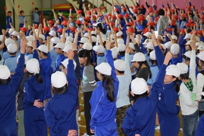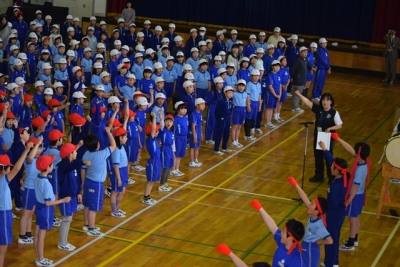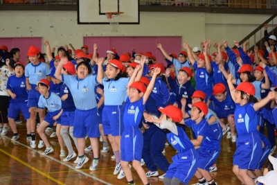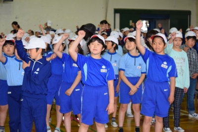 2016年5月10日 17時53分本日、第1回目の運動会全体練習は、雨天のため、体育館で応援練習を行いました。