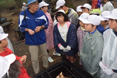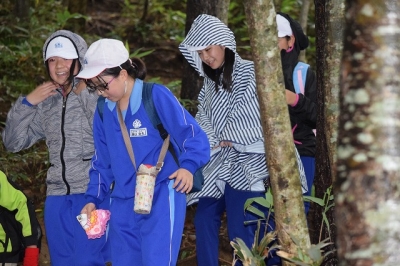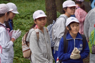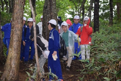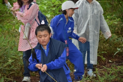 その後、各班ごとに地図をもってフィールドワークを行いました。前日からの雨でぬれた地面は、滑りやすくより過酷な道のりとなりました。