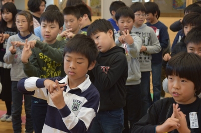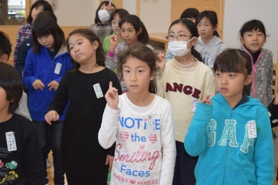 2016年11月17日 17時15分4年生が総合の時間に矢ケ崎悦子さんを講師にお招きして手話講座を開催しました。