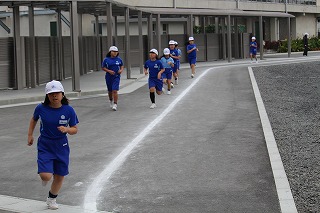 校庭が工事のため、特別コースで第4学年持久走記録会が行われました。