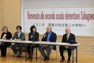 給食の時には、イタリアの食文化について教えてもらいながら、交流することができました。