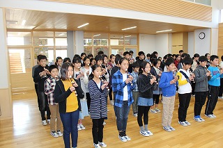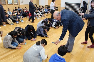 児童は、二部合唱や6パートに分かれるリコーダー演奏、迫力満点の群読のおもてなしをした後、折り紙を折るところを披露しました。