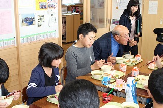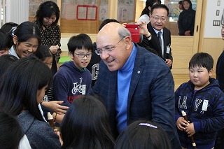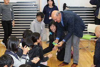 以前、二小の児童が折り紙を贈った縁で、副市長が訪れてくれました。
