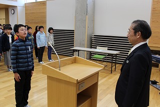 2018年3月16日 19時09分3月14日(水)に同窓会長様がご臨席の下、平成29年度の同窓会入会式が行われました。同窓会長様から、「中学校でもこれまで経験したことを生かし、それぞれの思いを胸に、自らの力で切り開いてください。」とお祝いの言葉が送られました。67名の卒業生代表からは、「中学校でも、自分の目標に向かって感謝の気持ちを忘れず、1日1日を大切に努力を積み重ねていきます」と誓いの言葉が述べられました。