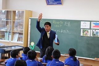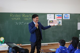 フィリピン出身のRicdios Ricarte(リクディオス・リカルテ)先生です。子どもたちは親しみを込めてRicky(リッキー)先生と呼んでいます。第二小学校においでになる前は、タイで7年間英語教師をしていたということで、教え方がとても上手です。