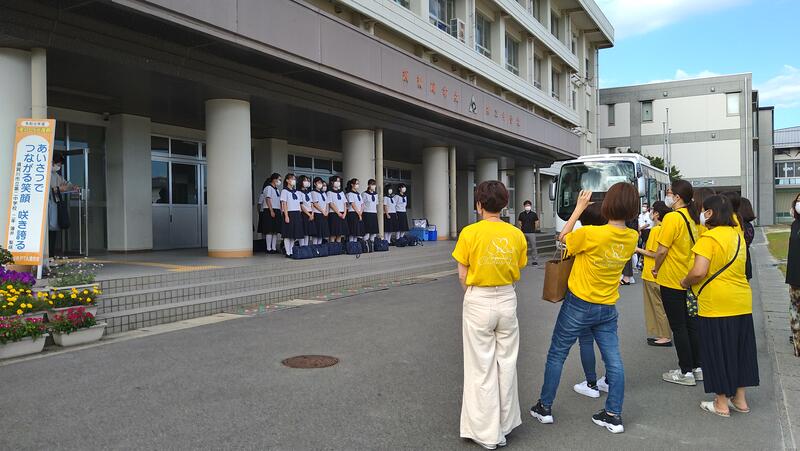 2021年8月29日 08時45分いわき芸術文化交流館アリオスで開かれる第75回福島県合唱コンクールに向けて出発しました。感染防止対策を徹底し、無観客で開催されます。中学校部門には45団体が出場予定です。合唱部の皆さん、上位大会を目指して頑張ってきてください。多くの保護者の皆様に見送りいただきありがとうございました。