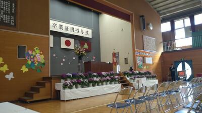 【画像は、須賀川市立柏城小学校の式場の様子です。】