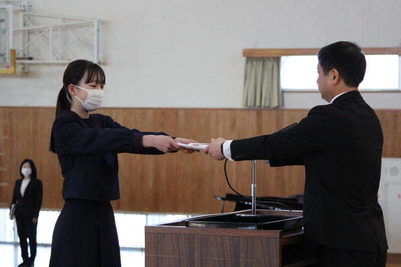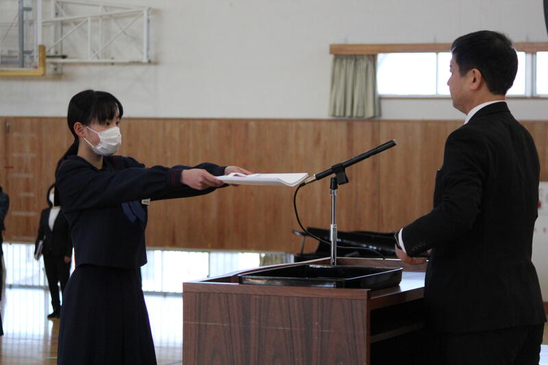 2024年3月22日 10時00分本日、令和5年度最後の授業日を迎え、各学年の代表生徒を通じて修了証書を手渡すことができました。今年度も、新型コロナウイルスやインフルエンザ感染拡大防止のために計画通りにできないこともありましたが、1・2年205日間の一年間を何とか過ごすことができました。保護者の皆様のご支援、ご協力に感謝申し上げます。4月8日には、それぞれ最上級生、中堅学年生として自覚と覚悟を持って元気に登校してくれることを楽しみにしています。