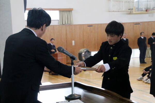 まず式を始める前に、サッカー部などの表彰披露が行われました。