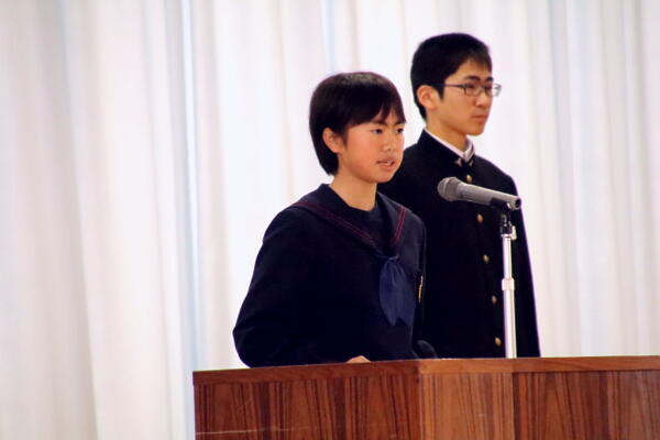 次に、各学年の代表が計画や抱負を発表しました。式終了後、冬休み中の過ごし方について生徒指導主事の小豆畑先生から、お話がありました。