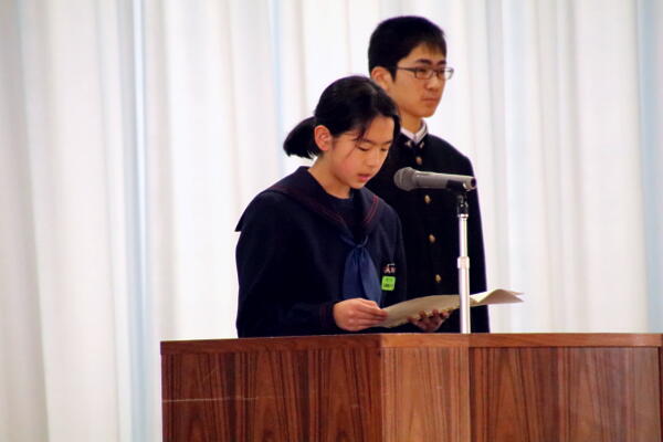 菊地校長の式辞では、「冬休み中は事故に巻き込まれないよう過ごすこと、時間を守り規則正しい生活を送ること、日々の生活に目標をもち過ごすこと。以上3点を守り元気に過ごしてほしい」とお話がありました。