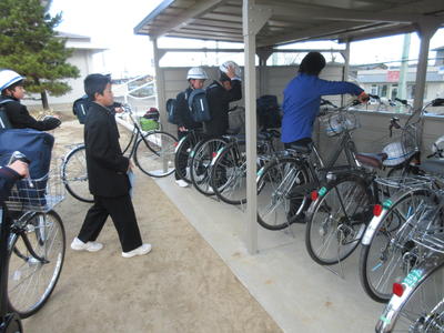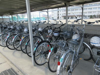 2019年4月10日 06時53分9日より新入生の自転車登校が始まりました。自転車の止め方がていねいです。また、元気にあいさつもしていました。安全部の生徒が朝から新入生の指導も行っていました。