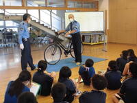 交通教育専門員の方2名を講師にお招きして、交通教室を行いました。今回は安全に自転車に乗るために、正しい交通ルールと自転車の点検のポイントをお話をしていただきました。自転車点検カードを配付しましたので、御家庭で一緒に点検をしてみてください。