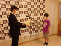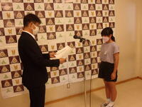 第1学期終業式(作文発表・賞状伝達)を行いました。71日間,新型コロナ感染予防をしながら,元気に学校生活を送ることができました。保護者の皆様の御理解と御協力に感謝申し上げます。