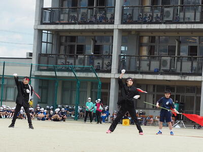 応援団の練習も,鼓笛やリレー同様に休み時間返上で練習に取り組みました。真剣で,凛々しい姿の応援団。「わぁー,格好いい!」と低学年の子どもたちから声が上がりました。何事にも一生懸命に取り組む子どもたち。それが三小の子どもたちの良さですね。