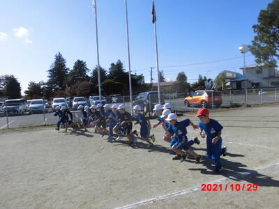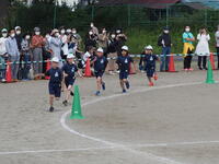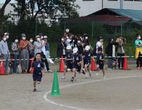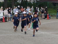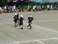 1年生の運動会の様子です。1年生にとっては小学校生活,初めての運動会でした。「かけっこ」と「学級対抗玉入れ」の様子です。競技前やゴールした後の並び方もとても上手でした。