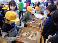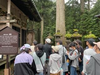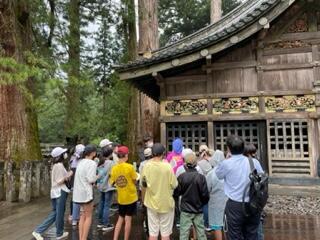 東照宮で歴史の学習です。「見ざる・言わざる・聞かざる」東照宮の三猿です。どんな意味があり,どんな思いがこめられて作られたのかな?子どもたちは,想像をふくらませメモをとりながら見学しています。