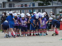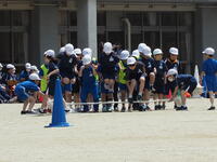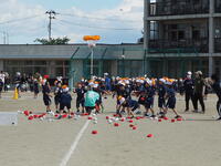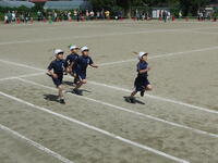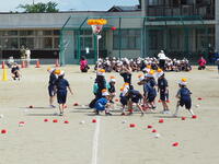 3年生は,「100m走」と「牡丹タイフーン」を行いました。中学年からは,走る距離が100mと長くなります。最後まで全力で走り切りました。団体種目の牡丹タイフーンでは,息の合った動きでチームワークの良さを感じました。