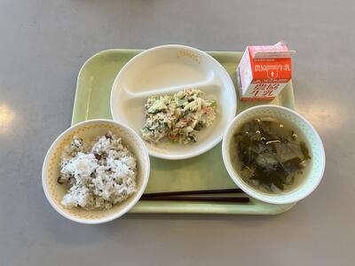 今日の学校給食は,「カリカリさつまいもごはん・ツナの和え物・わかめと豆腐のみそ汁」でした。さつまいもごはんを食べる機会は,なかなかないかと思います。しかし,学校給食では,食育の日献立・地産地消献立など,地物や旬な物など考えられたメニューで食べることができます。これは,学校給食の最もよい点の1つです。
