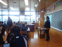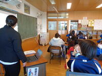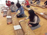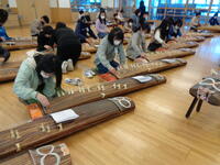 【2月7日(月)・8日(火)】桐音会の後藤先生をお招きし、高学年の和楽器体験教室を行っていただきました。十三絃や十七絃の箏、三絃(三味線)について楽器紹介をしていただいた後、「さくらさくら」の演奏にチャレンジしました。「さくらさくら」は、伝統的な日本の歌曲で幕末、江戸で子ども用の箏の手ほどき曲として作られたものだそうです。弦の番号を頼りに、みんなで演奏を楽しむことができました。また、授業の最後には、桐音会の先生達による、宮城道雄作曲「春の海」や「祭りの太鼓」の生演奏を鑑賞しました。子どもたちは、迫力ある演奏に感動することができました。