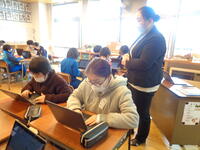 【2月7日(月)】5年2組、3組の子どもたちは、クロムノート(タブレット)を使って、タイピングのトレーニングを行いました。ICT支援員の割栢さんのお勧めのソフトを使用し、両手のホームポジションを確認しながら、ブラインドタッチに挑戦していました。