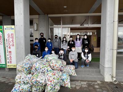 今年度ボランティア委員会が中心となって集めてきたペットボトルキャップを業者の方に回収していただきました。