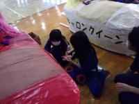 5年生は,運動会の団体種目で使用するお馬さんたちのメンテナンスをしました。