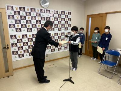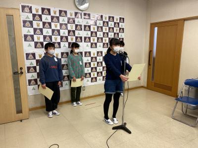 6年生代表4名が委嘱状をいただき,4つの誓いを述べました。