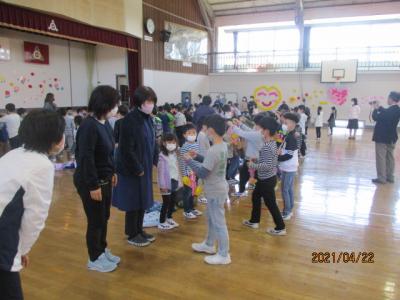 集会委員会の進行のもと,「1年生を迎える会」が行われました。