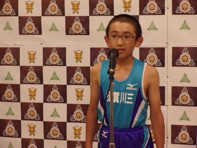 テレビ放送において10月1日(木)に行われる、いわせ地区陸上大会の選手壮行会を行いました。校長先生から「平常心を大切に」と言葉を頂き一人ひとりの大会に向けての意識が高まりました。