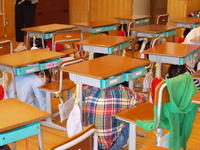 今回の避難訓練は、大きな地震が発生したことを想定しての訓練となりました。訓練では、教室で大きな揺れから身を守る訓練や防災ビデオによる災害への備えなどを学習しました。