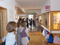 14時からの緊急時引渡訓練では,引渡しの訓練の経験のない1年生と転入生の保護者の方に協力を得て、速やかに引き取りに来校できることを目的に訓練しました。