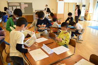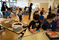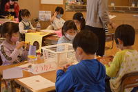 今日は、秋の自然物を材料に、楽しいおもちゃを作る学習をしました。マラカス・けん玉・どんぐりごま・さかなつり・やじろべえなどを楽しく作りました。