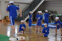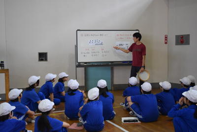 今日は、体育館で走り幅跳びの学習をしました。自分の課題に応じた練習の場を選択して、友だちと協力しながら記録をのばすための練習に取り組みました。