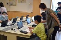 今日の学習では、昨年度末に導入されたタブレットを活用しました。これまでの倍数の求め方の学習を基に、プログラムづくりをとおして、倍数の求め方を論理的に考える学習を行いました。