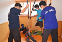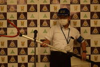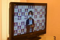 職員による不審者対応訓練を行い、その後、テレビ放送による全体会を行いました。