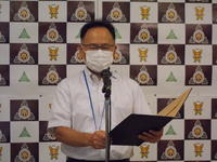 松山校長先生からは「目標をもって根気づよく練習に取り組んでほしい」などの話がありました。また、6年生代表の西澤悠仁君からは「6年生全員が目標をもって一生懸命に練習に取り組みます」などと、誓いの言葉が発表されました。