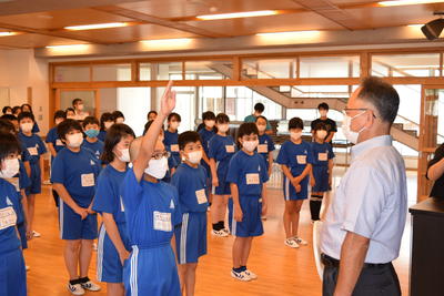 10月1日(木)に予定されています『いわせ地区小学校陸上競技交流大会』に向けての結団式が行われました。