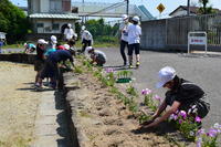 今日は、用務員の齋藤さんにご指導をいただきながら花の苗(マリーゴールド・アゲラダム・サルビア)を植えました。1年生にとっては、初めての愛校作業になりました。