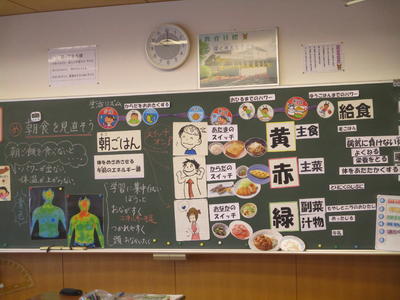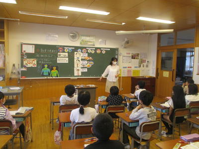 4年生は、本校栄養士をゲストティーチャーに「朝ご飯」の働きについて学習しました。朝ご飯を食べていない時の体の様子と比べながら、自分の朝ご飯について見直しました。