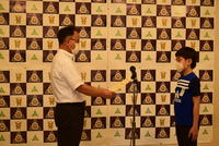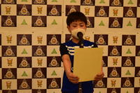 テレビ放送による全体会では、『交通安全推進委員』の委嘱状の交付式も行われ、6年生児童代表が校長先生より委嘱されました。