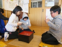 3年生全クラスが、博物館より特別に貸していただいた「昔の道具」を使って、社会科「古い道具と昔のくらし」の授業を行いました。ほとんどの子が初めて見る昔の道具に興味津々。わらじを履いてみたり、昔の食事の様子を再現してみたり、実際に手に取ってみるなどして、昔の人々の生活ぶりに思いを巡らせました。貴重な、体験活動を支援していただきました須賀川市立博物館の皆さまに、改めて御礼申し上げます。ありがとうございました。