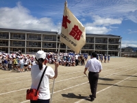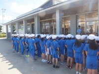 大地震を想定した避難ということで、どの学年も担任の指示に従いながら、整然と避難することができました。その後、全体会は、テレビ放送にて行われ、校長先生からは避難の様子についての感想、そして、担当教師からは、避難の心構えについて具体的に話がありました。