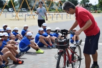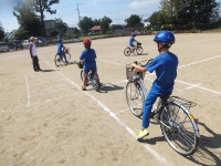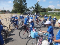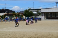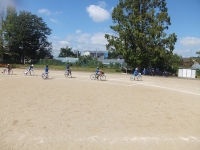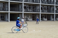 2016年9月7日 16時58分校庭の模擬道路で実際に自転車に乗って、正しい自転車の乗り方を学びました。