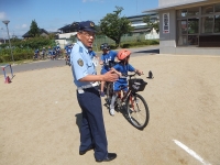 今回は、自転車に乗る際の「安全確認の仕方」や「安全な運転の仕方」など再確認し、実際に道路や校庭の模擬コースを使って学習しました。