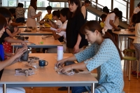 長沼にお住いの佐藤友幸先生を講師にお迎えして、約50名が茶碗やカップ、皿などをあれこれと思いを巡らしながら陶芸を楽しみました。