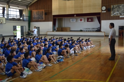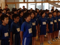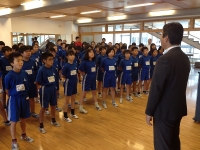 本日の昼休み、花王ホールにて、岩瀬地区陸上交流大会に向けての結団式が、6年生全員参加で行われました。結団式では、校長先生より、まずは挑戦してみること、それから、練習においては友達と支え合うことなどが呼びかけられました。最後に、代表児童が、元気いっぱい「誓いの言葉」を述べて式が終了しました。大会は10月4日(火)です。今日から本格的に種目練習がスタートします。6年保護者の皆様、よろしくお願いします。